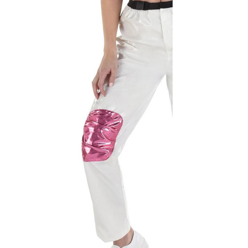 Revive your favorite 90s pop star one more time! Inspired by the iconic concert tour, this costume features a pink tube top with a sparkling metallic finish and white pants with matching pink knee pads and an attached faux sound pack.