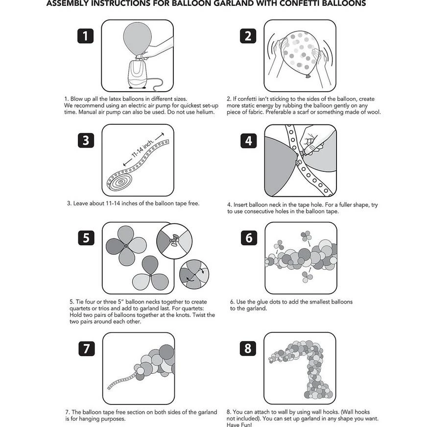 - Inflate all balloons with air and tie a knot at the end. (Balloon pump not included. Recommended for quick inflation.)