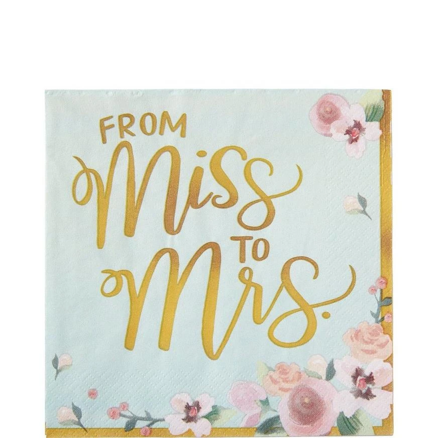 Celebrate her upcoming wedding day with Mint to Be Floral Lunch Napkins! Featuring a color scheme of mint green, gold, and pink, these wedding-theme napkins feature a “From Miss to Mrs.” headline in cursive writing in the middle. A border of pink flower surrounds the sweet message and a gold border accents the outside. Set these large paper napkins out on the buffet table at an engagement party or bridal shower.