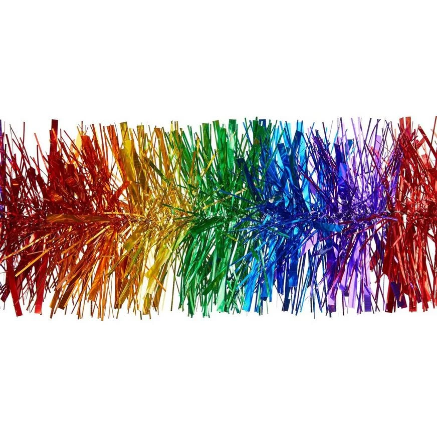 Your party will be full of decorative color and shine when you accentuate the rest of your rainbow party supplies with a Rainbow Fringe Tinsel Garland! A garland featuring strips of rainbow foil will brighten up any event. You can use this rainbow garland to decorate for pride parties, rainbow parties, or any other special occasion. Turn your party into a colorful event with this fringe garland!