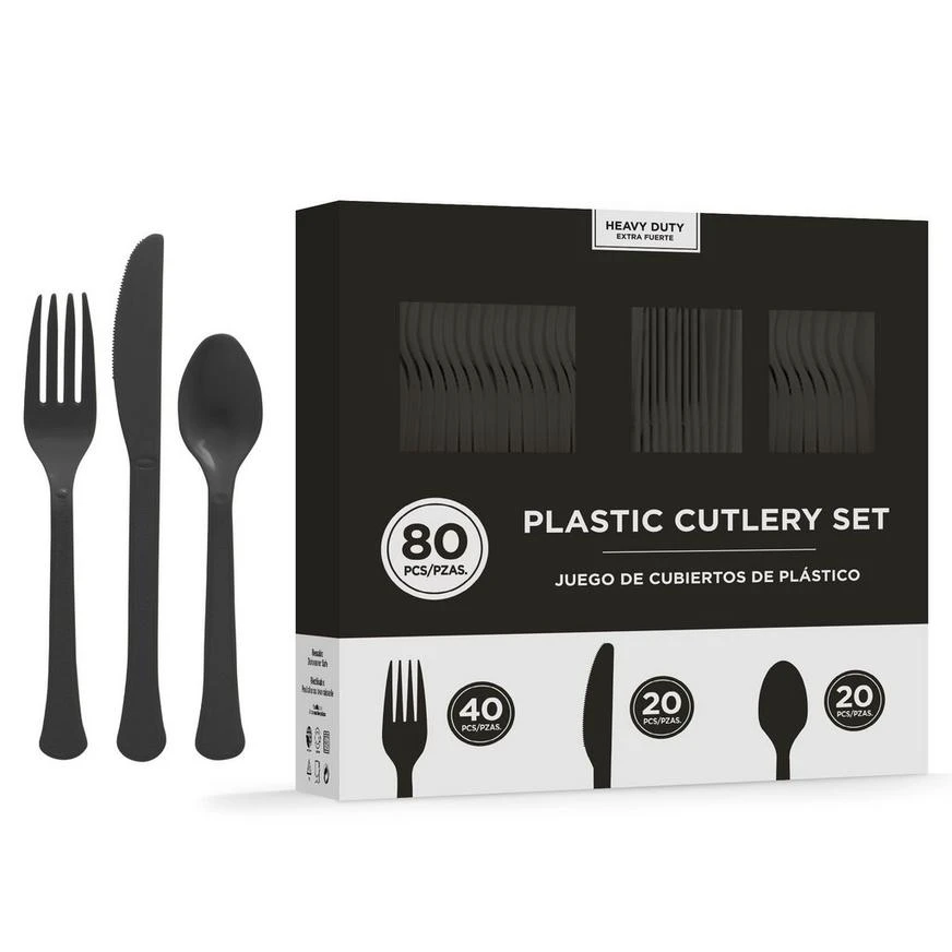 Black Heavy-Duty Plastic Cutlery Set product details: