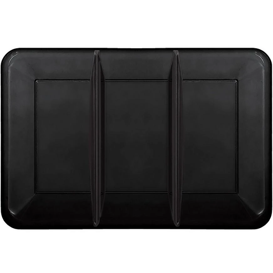 A Black Rectangular Sectional Plastic Platter is equally suited to casual get-togethers and elegant soirees. Three separate compartments accommodate assorted appetizers, cold cuts, desserts, and more. The opaque black color suits any party theme or home decor, and the durable plastic construction means you can use it again and again.