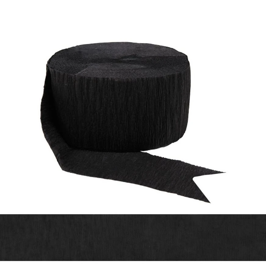It’s fun, it’s dark, it’s Black Streamer! Hang and twist this giant roll of crepe paper all over your party room, from wall to wall, and ceiling to floor. For a custom design that accentuates your birthday bash, Halloween party, Day of the Dead festivity, or any other celebration, mix and match with solid-color and printed decorations. Black Streamer measures 81ft long x 1 3/4in wide.