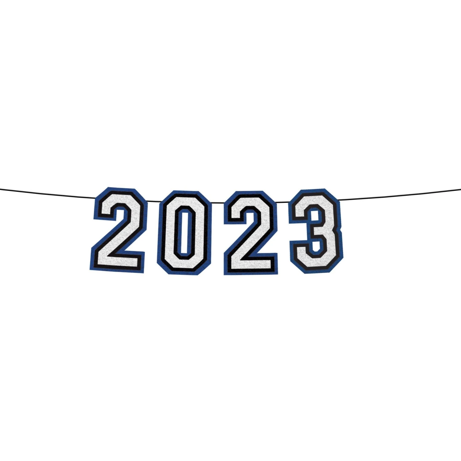 Show off their graduation year with the Blue 2023 Banner! This oversized banner reads “2023” in collegiate-style numerals with a blue and black outline. Use the included ribbon to hang the banner for the grad party.