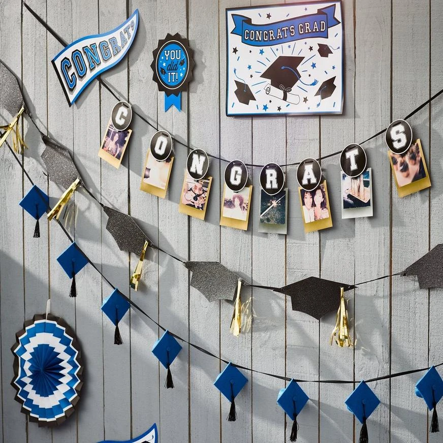 Blue Grad Cap & Tassel Felt & Ribbon Garland product details: