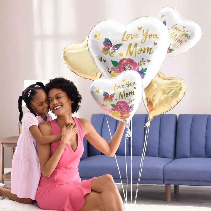- 1 Love You Mom Butterflies & Flowers Heart Foil Balloon, 28in