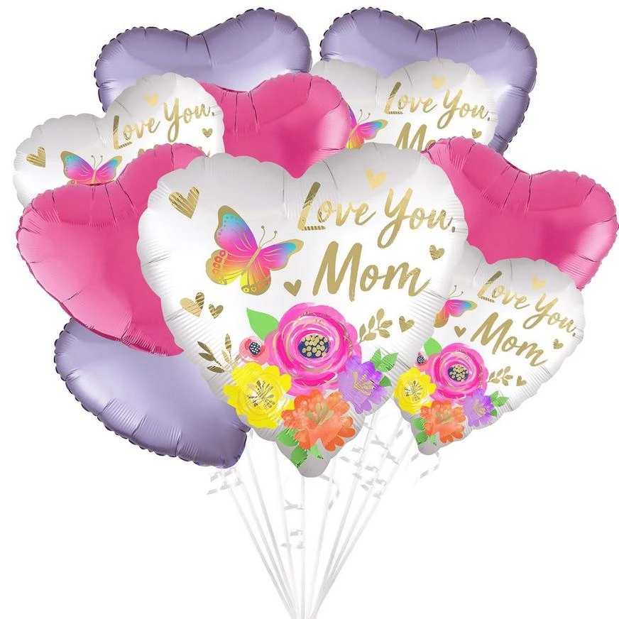 | 1 | Butterfly & Flowers Satin Love You Mom Heart Foil Balloon, 28in (SKU 936447) |