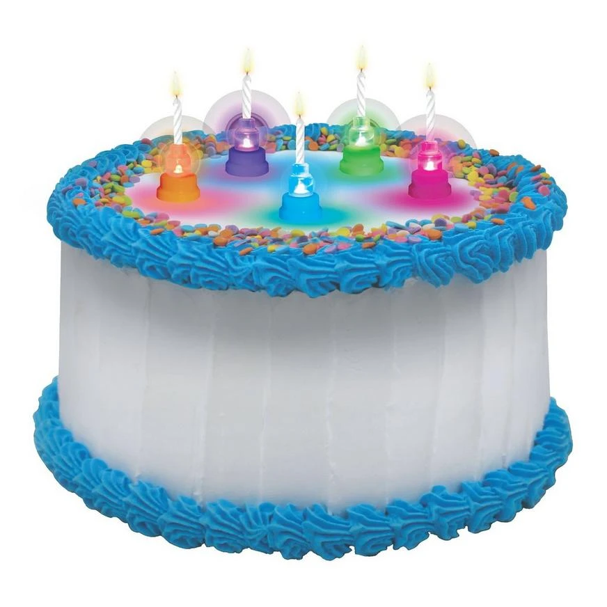 Turn any cake into a dazzling light show with Cake Brites! This pack features five colors of color-changing lights that sit atop your cake and double as candleholders.