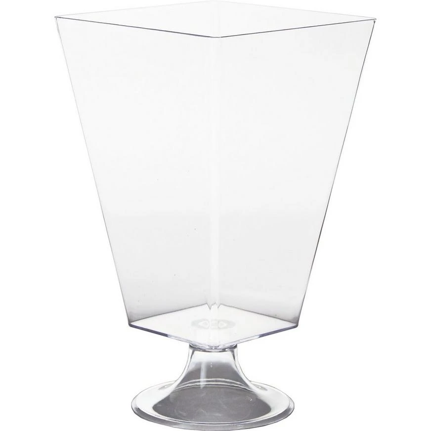 A Clear Plastic Pedestal Container is an elegant way to display your sweets and treats! This classic candy buffet container is clear and held up on a pedestal, allowing guests to easily see the colorful candy inside. The wide, square mouth allows for easy access to jelly beans, popcorn, gumballs, and more. You can even fill it with flowers, table scatter, or other decorations to wow friends with a unique table centerpiece!