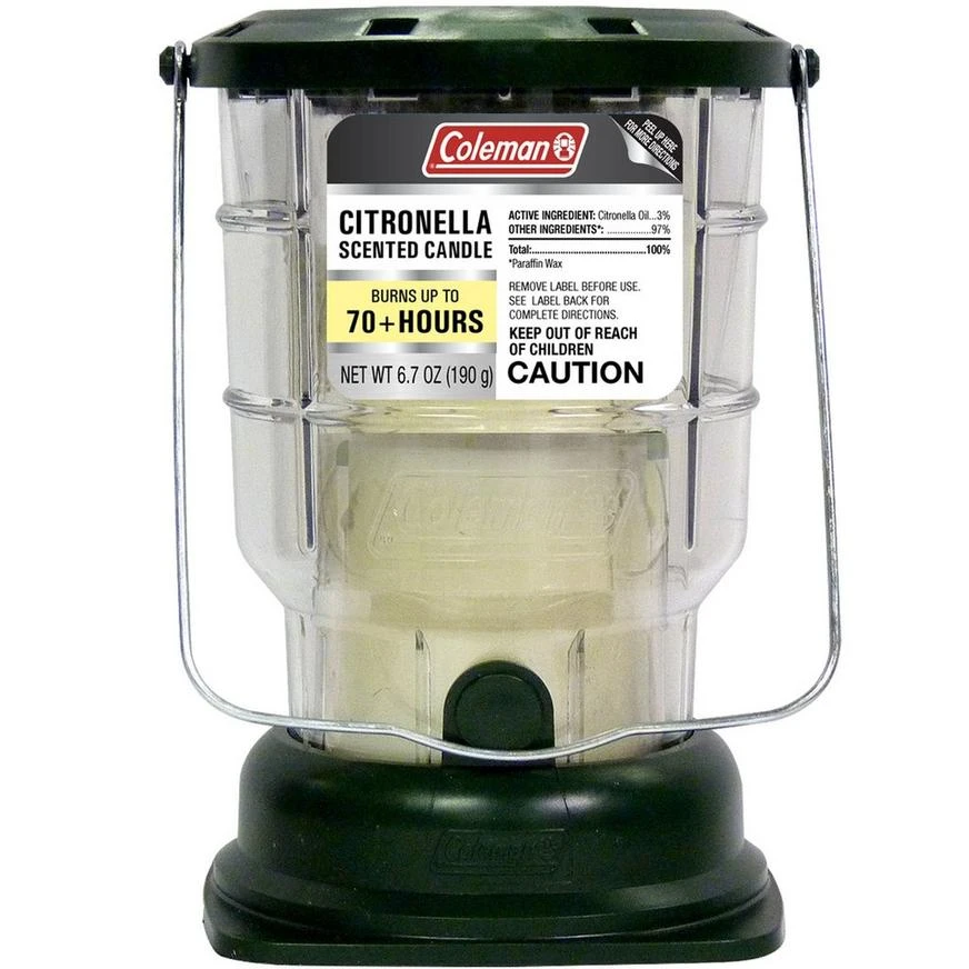 Enjoy your time in the great outdoors this summer without being bitten up by bugs. This Coleman citronella lantern keeps the bugs away and produces a refreshing lemon scent. This lantern gives you 70+ hours of burn time and features an easy-grip handle that doubles as a hanger and a reusable rain cap to help keep the candle dry and free of debris.
