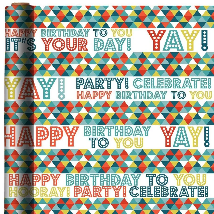 This Colorful Triangles Birthday Gift Wrap features blue, green, orange, and red triangles surrounding the headline “Happy Birthday To You!” in a repeating pattern. You spent time looking for the perfect gift, now you’ve found the perfect gift wrap! Use it to wrap presents for your next birthday gift.