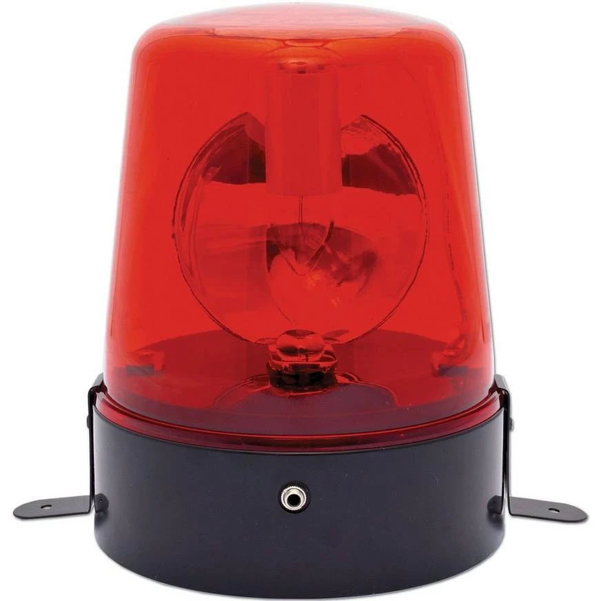 Turn on the spinning Beacon Light to get the adrenaline flowing! Our Disco Beacon Light is a rotating beacon light set in a durable red plastic housing with an inverted glass shape. The black metal base has 2 tabs with holes, allowing you to secure the light with screws, nails, or hooks. Disco Beacon Light can be run continuously indoors for up to 6 hours and measures 7in tall x 5in in diameter.