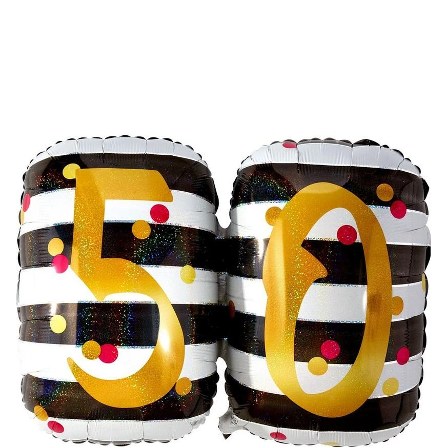 Giant Prismatic Pink and Gold 50th Birthday Balloon product details: