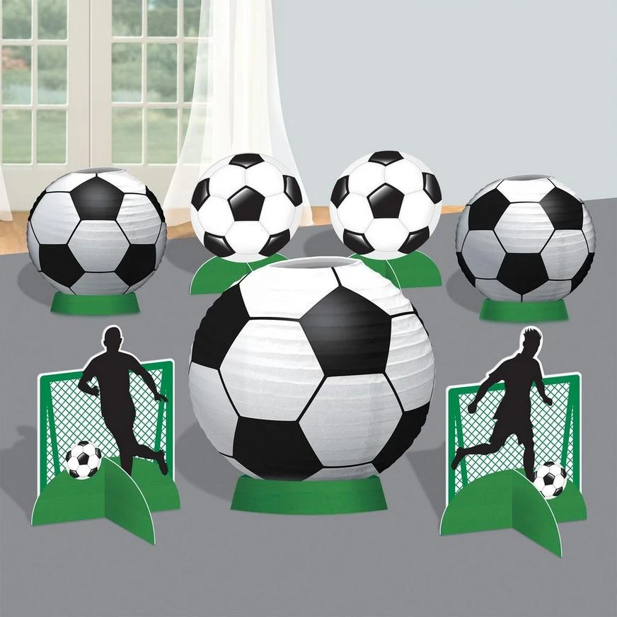 Kick up your soccer-themed party decor with the Goal Getter Soccer Table Centerpiece Kit! This 8-piece set comes with three 3D soccer ball centerpieces, two cardstock soccer ball centerpieces, and two soccer player silhouette centerpieces. Assemble these soccer table decorations and place on your party tables to add some kick to your soccer-themed party. Whether for a soccer-themed birthday party, soccer team party, or sports-themed party, the Goal Getter Soccer Table Centerpiece Kit will complete your soccer decor.