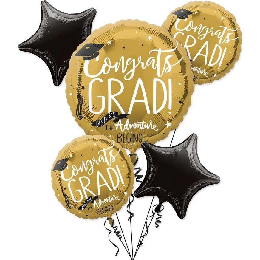 - 2 Gold The Adventure Begins Graduation Balloons, 17in diameter