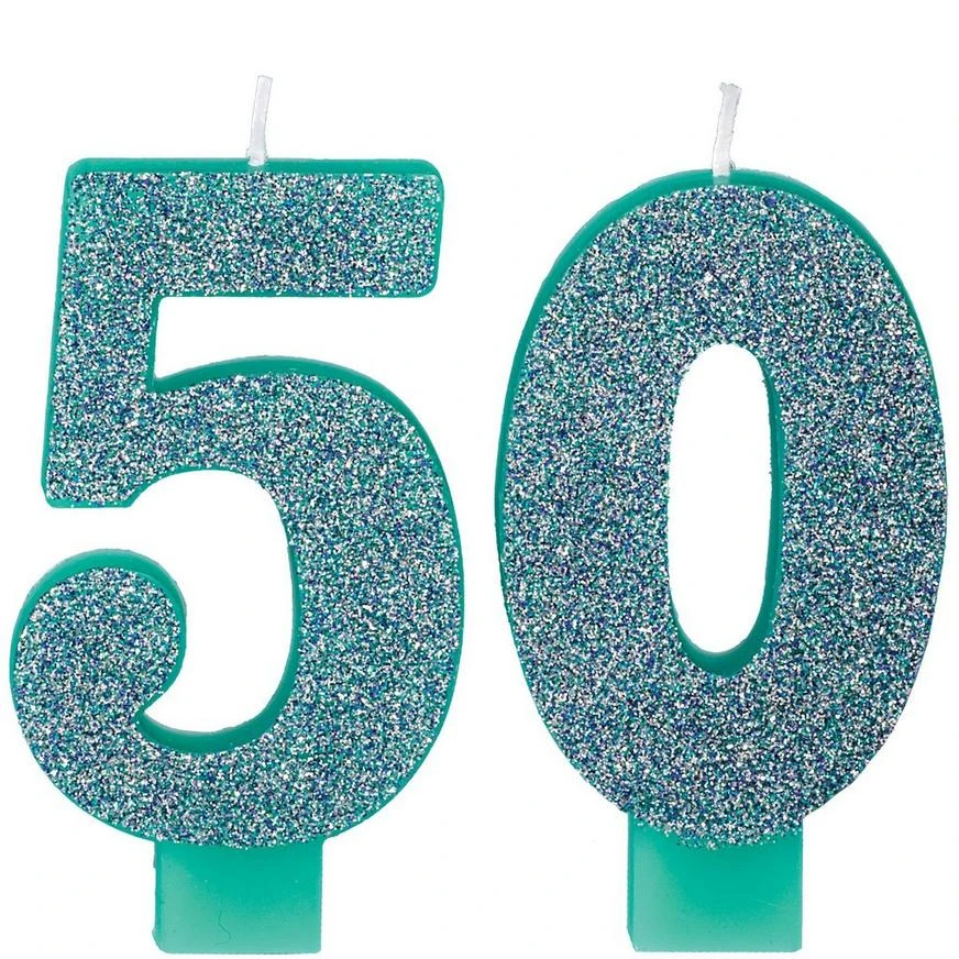 Make their cake look even sweeter with Here’s to Your Birthday Number 50 Birthday Candles! The molded “5” and “0” number candles are covered with shimmering green and silver glitter. Watch their face light up when they see these 50th birthday candles on their cake. This milestone birthday will be one to remember with these shining green candles!