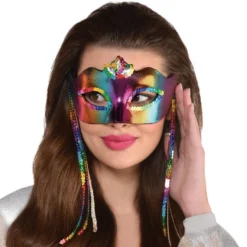 Sequined Rainbow Fabric Masquerade Mask, 7in X 3.2in