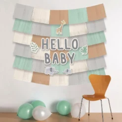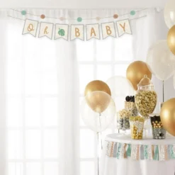 White Pop-Up Baby Shower Block Decorations With Gold & White Mini Latex Balloons – Soft Jungle