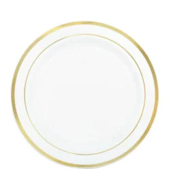 White With Gold Rim Premium Plastic Dinner Plates, 10.25in, 20ct