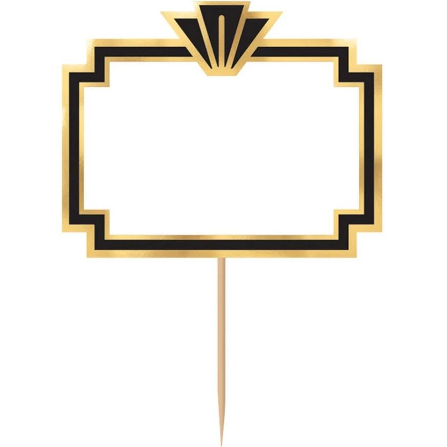 The cupcakes and brownies at your Hollywood-themed party will catch everyone’s attention with Hollywood Label Picks! These party picks feature miniature paper signs with black and gold art deco patterns. Personalize these signs to label different treats or simply add fun phrases and messages to encourage guests to dig in. These elegant label picks are the perfect addition to your Hollywood party’s dessert table.