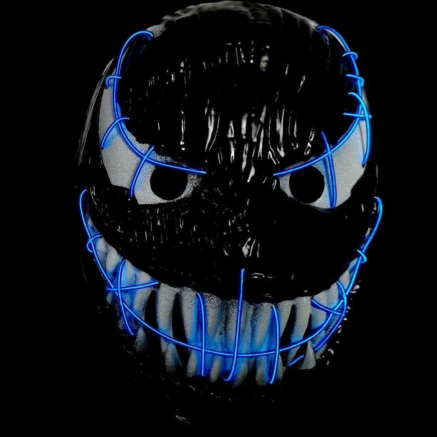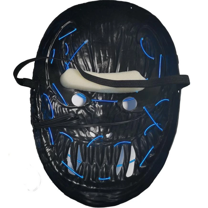 “Have a scary grin all Halloween night with the Wide Mouth Monster Mask! This creepy mask lights up with blue electroluminescent wire and features a big, toothy grin.