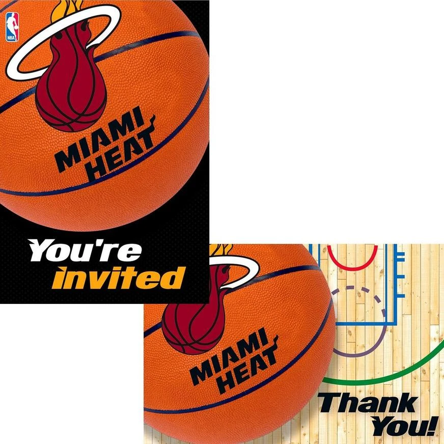 Miami Heat Invitations & Thank You Notes for 8 include: