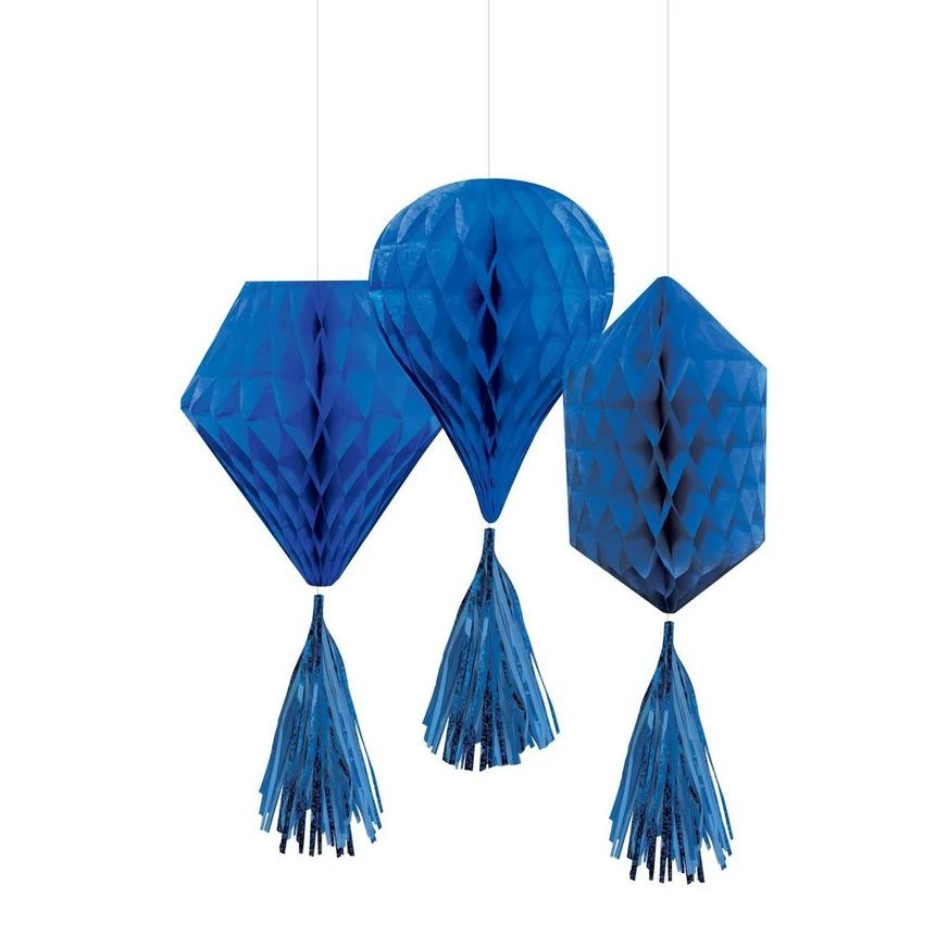 Mini Royal Blue Honeycomb Decorations with Tails product details: