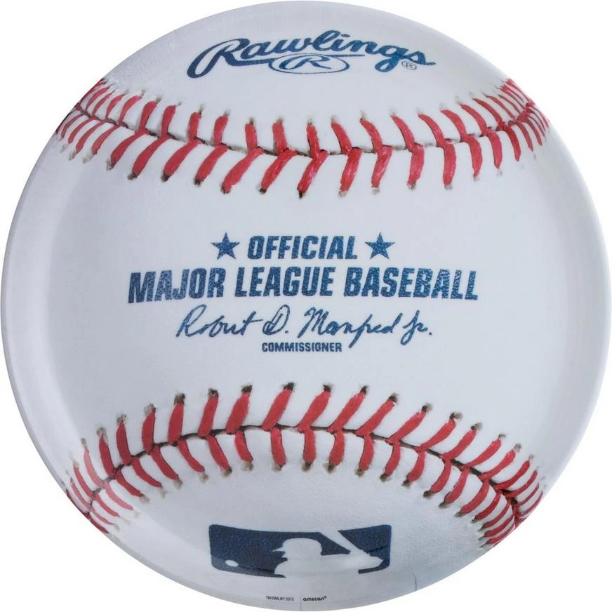 Staying in for the ball game? Then load up an MLB Baseball Platter with hot dogs, burgers, and your favorite game day snacks! This round plastic serving platter is printed to look like a giant baseball, complete with the MLB logo, Rawlings logo, and red stitches.