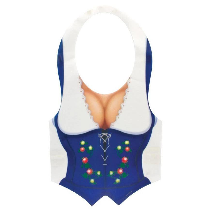 Boost your Bavarian bustline with an Oktoberfest vest. This reusable vest apron is printed on quality textured plastic and features an ample Dirndl neckline, making for a great Oktoberfest party favor, gag gift, or simply an attention getter.