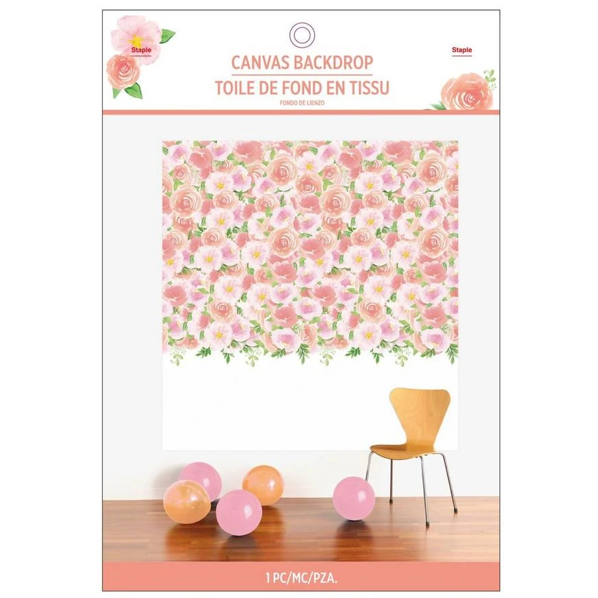 Set the scene for a precious baby shower photo booth by hanging this canvas backdrop. The design features a wall of pink flowers and lush greenery.