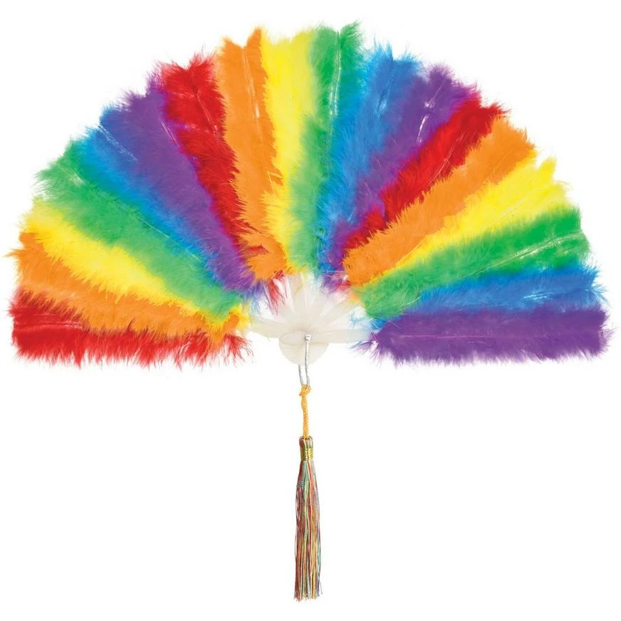 Keep yourself cool during Pride with this classic accessory! The wood handle features marabou feathers in a repeating rainbow of colors. It’s the perfect, fabulous finishing touch.