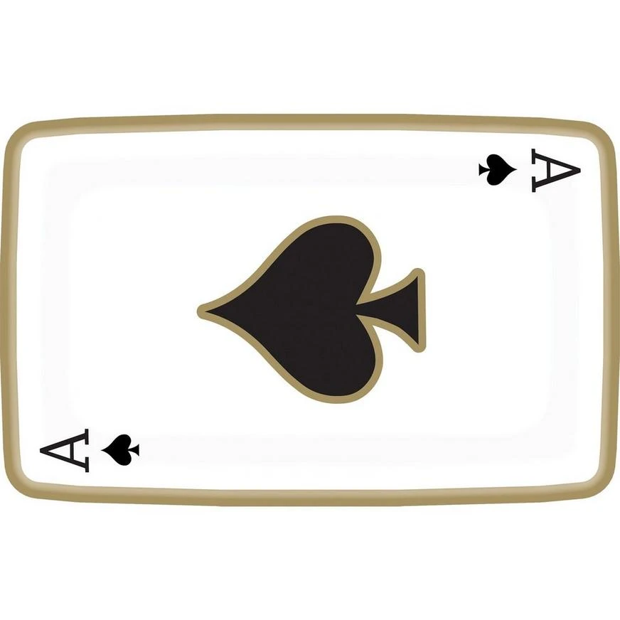 Bring drama to the table with Roll the Dice Casino Playing Card Lunch Plates! Shaped like a playing card, these paper plates feature the ace of spades with a gold border. These plates are great for serving lunch or dinner, appetizers, or hors d’oeuvres at casino night. The vibrant colors on these lunch plates are sure to make your food stand out.