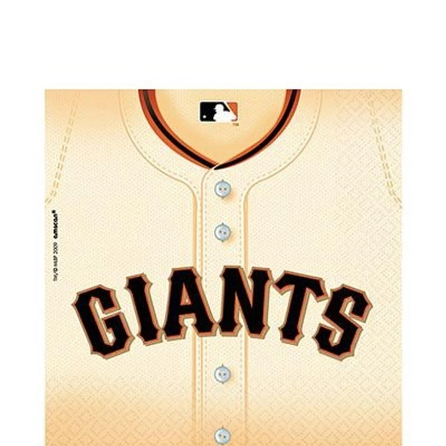 San Francisco Giants Lunch Napkins protect your game day outfit from ketchup and crumbs! These 2-ply paper napkins are printed to look like an official team jersey with MLB and Giants logos. Keep a stack on your table at your baseball-themed party.