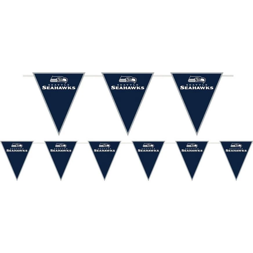 Get your party ready for some football! This Seattle Seahawks Pennant Banner features the colors and logo of your favorite football team printed on one side of each flag. With strings on each side for easy hanging, this officially licensed NFL decoration is perfect for game day or a sports-themed party.