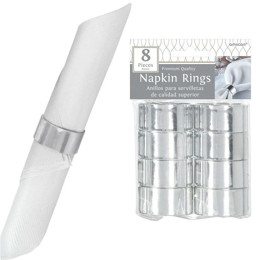 Silver Napkin Rings add understated elegance to your table. These plastic napkin rings feature a metallic silver finish that really makes your table setting shine. Suitable for everyday entertaining or special events, they’re the perfect finishing touch at your anniversary party, wedding, or birthday party.