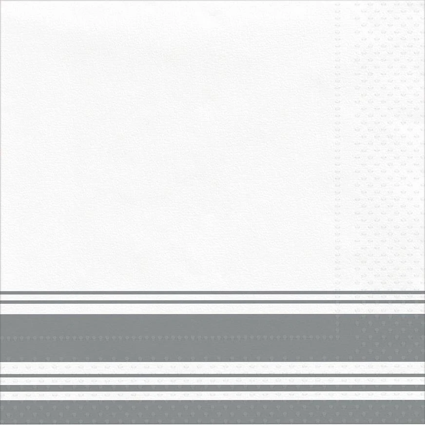 These large white paper napkins feature a sleek and elegant border made of silver stripes in varying widths. Napkins are a party essential, and with 40 per package, there are plenty to go around. Place a stack at your table, bar station, or buffet table at your next celebration, small or large.