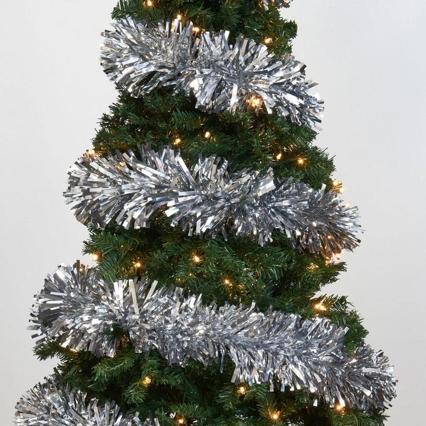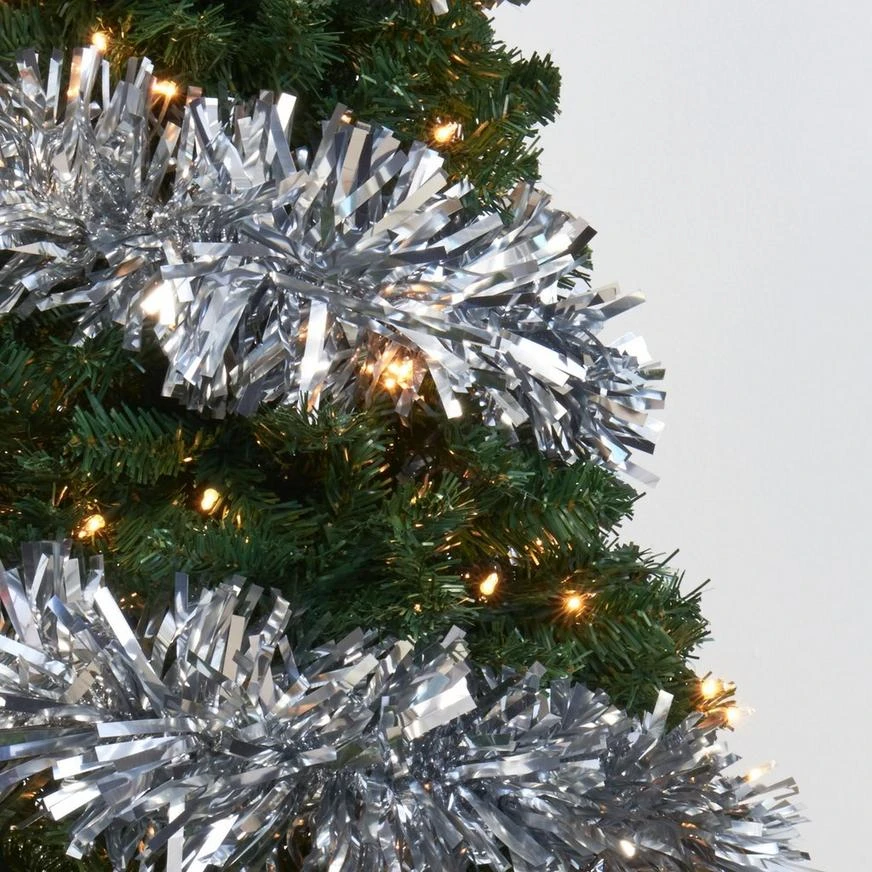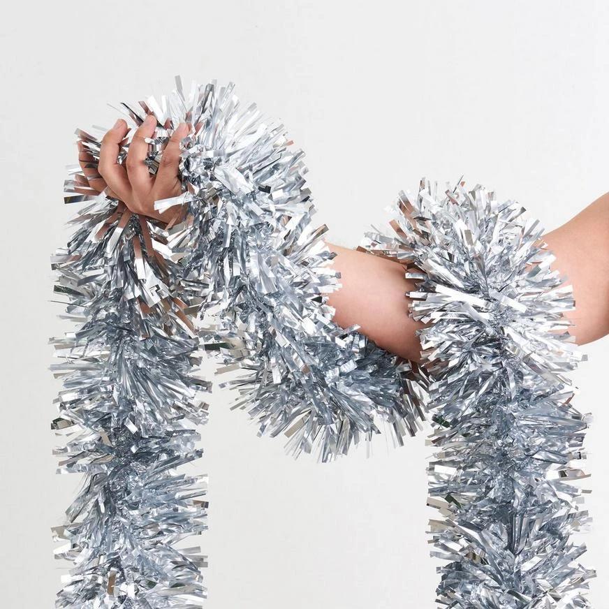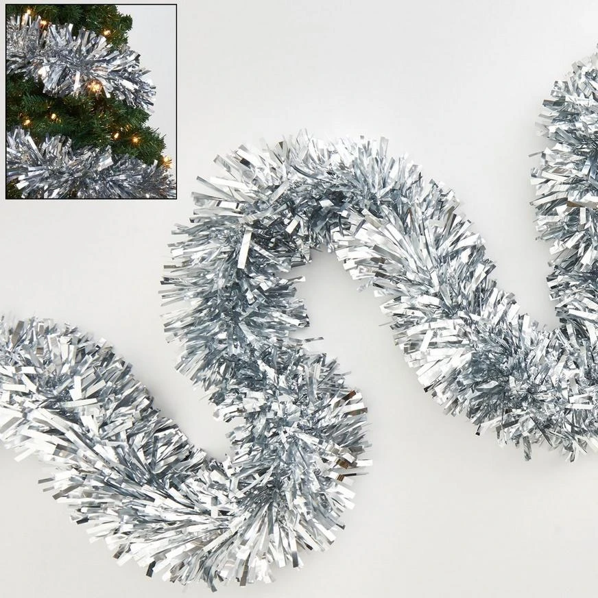 Deck out your mantel, banister, or doorway with some holiday shine! This 9ft Christmas garland is bright silver with an eye-catching metallic finish.