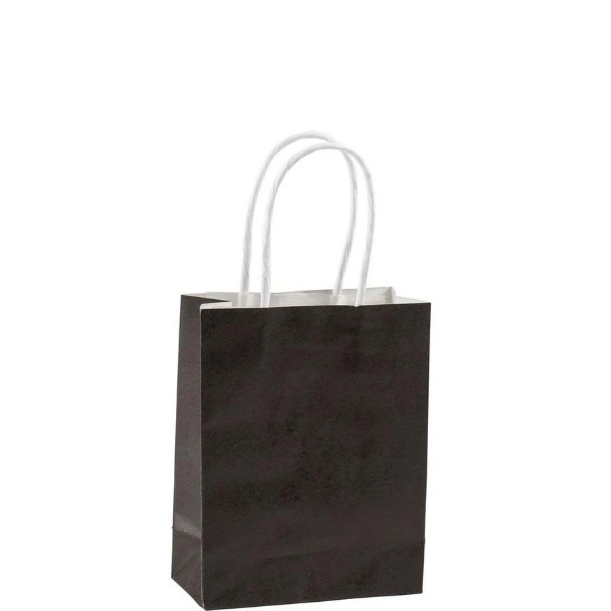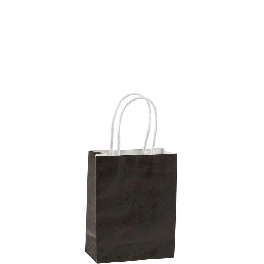 Give your party gifts an elegant and handcrafted look with Small Black Kraft Bags! Each small black gift bag is made of durable kraft paper and has white twisted paper handles. The versatile design makes it great for crafts and personalization. Decorate these matte paper bags with ribbon, gift tags, stamps, stickers, markers, and more to customize them for your event. Then fill the black favor bags with goodies and treats for your guests to take home.