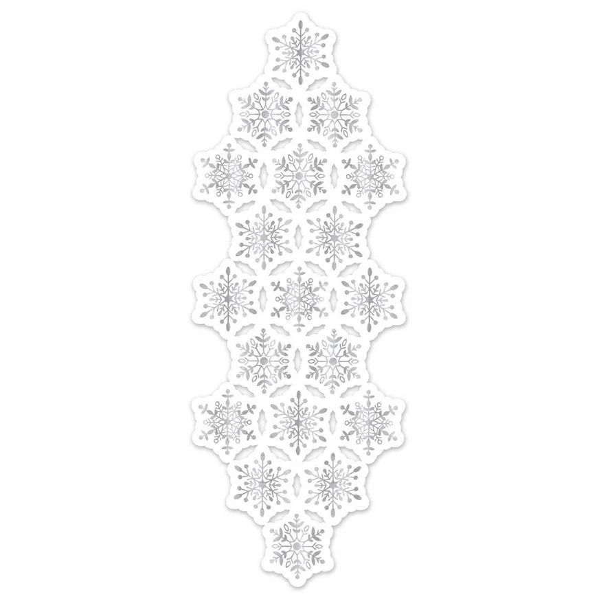 Lay the foundation for a winter wonderland tablescape with the Snowflake table runner! This fabric runner features silver snowflake prints on white snowflake tiles.