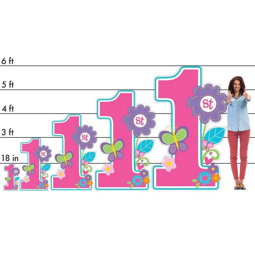 Set the table with a Sweet Birthday Girl Centerpiece Cardboard Cutout for a picture-perfect scene. It features a large 1st headline surrounded by bright flowers and butterflies and has an easel back for support. A themed centerpiece is an easy way to bring your child’s birthday party to the next level and it can even be reused as a photo prop for your selfie station! Sweet Birthday Girl Centerpiece Cardboard Cutout product details: 18in tall Attached easel stand Assembly required Design on one side only