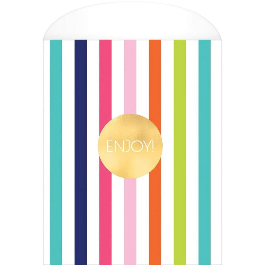 Fill Sweet Treats Treat Bags with yummy snacks for the whole party! These paper treat bags read “Enjoy!” across the front on a background of colorful vertical stripes. The vibrant colors make for a chic display that guests will be excited to get their hands on. Send everyone at your baby shower or birthday party home with a bag full of goodies!