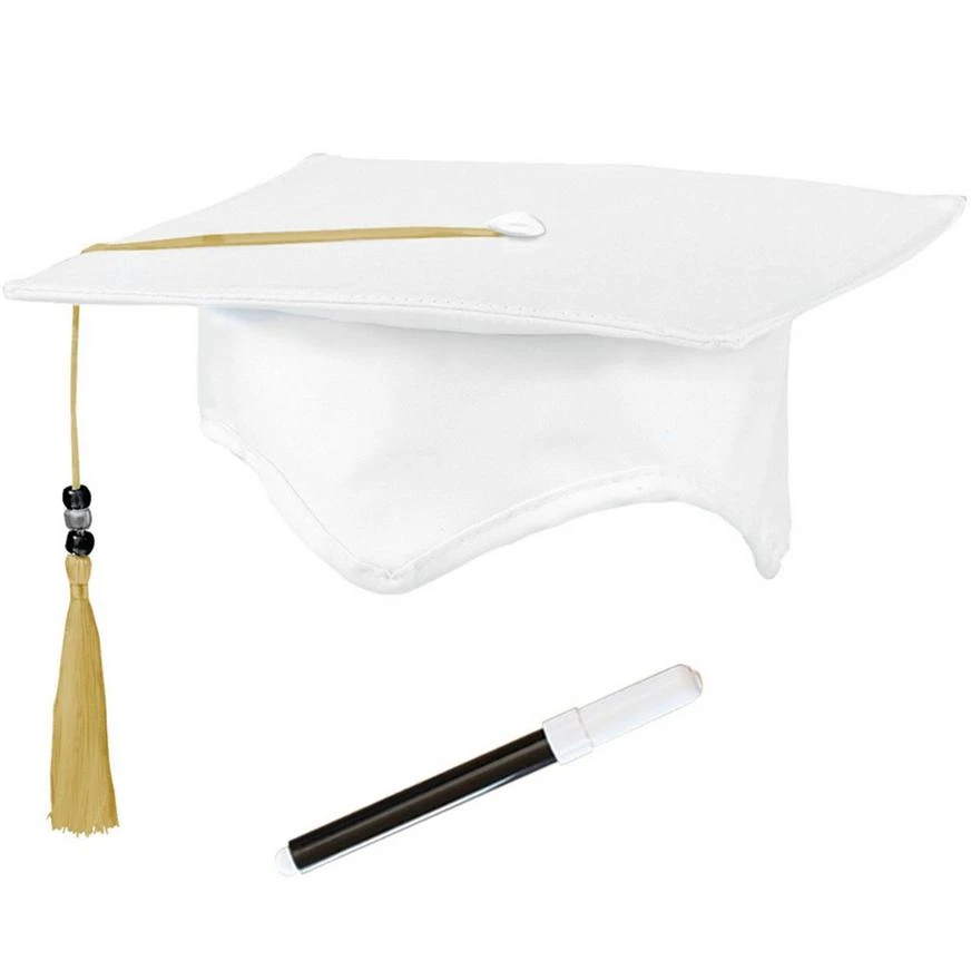 White Autograph Mortarboard Graduation Cap product details: