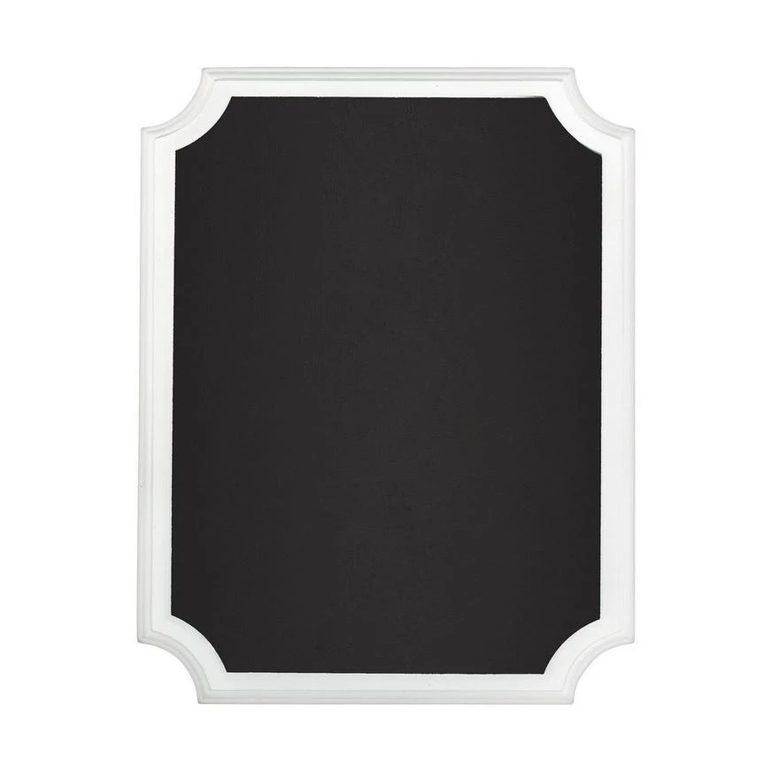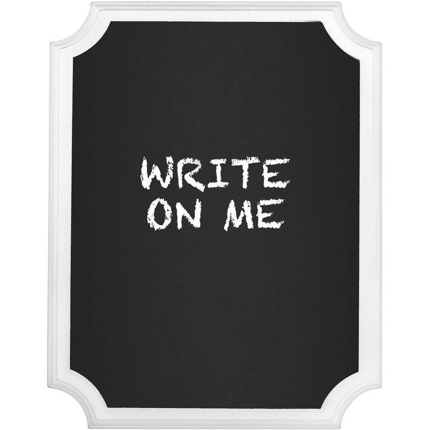 Add a personalized touch of charm to your event with a fiberboard White Border Chalkboard Sign! This easel features a matte black panel that can be used to display personal messages, buffet items, important party details and is surrounded by a border of crisp white. Use the White Border Chalkboard Sign vertically or horizontally at your wedding reception as a guestbook sign or at your bridal shower.