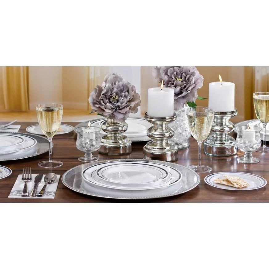 White Silver-Trimmed Premium Plastic Lunch Plates product details: