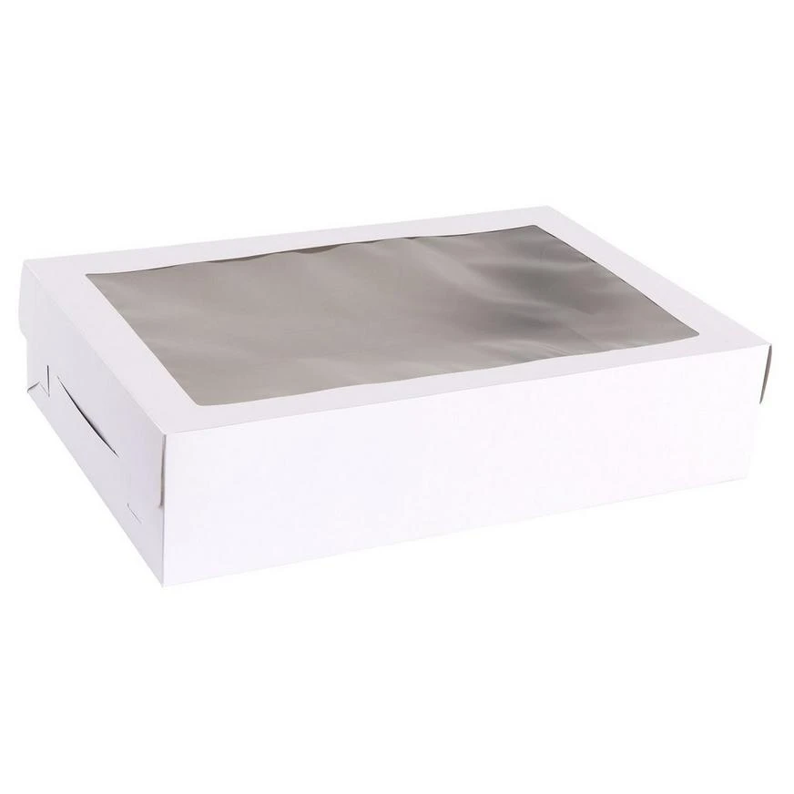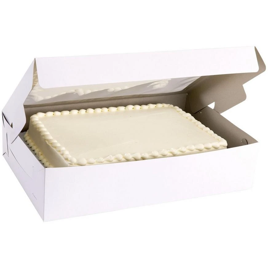 Take the cake in a White Window Half-Sheet Cake Box. This classic white front-load box is perfect for packaging a half sheet cake, cupcakes, cookies, or any other baked goods. The top features a clear plastic window so you can show off your delicious treats. This solid white cupcake box makes a perfect canvas — decorate it with markers and stickers to suit any occasion.
