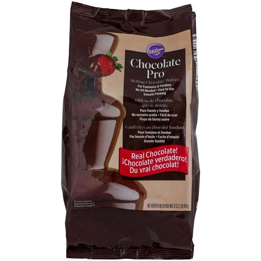 Get perfectly smooth chocolate with Wilton Melting Chocolate Wafers! These chocolate disks melt quickly and easily, creating the ideal consistency for melted chocolate. Use with your chocolate foundation or fondue pot for a fun party dessert. They’re perfect for dipping and decorating fruits, candy, cookies, and more!