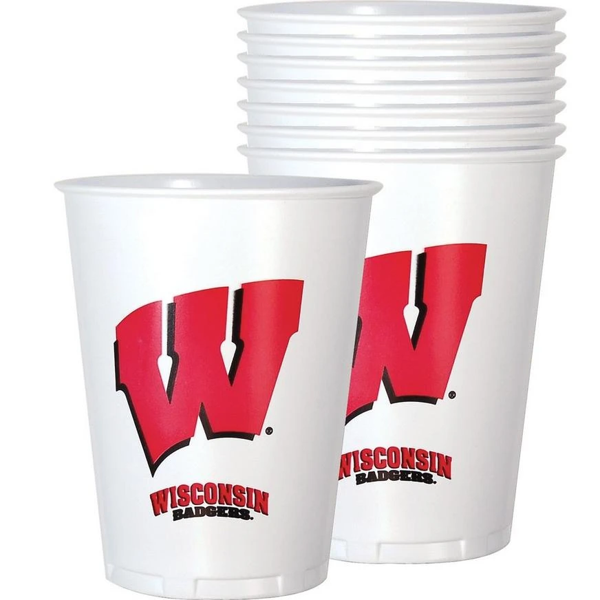 Raise a toast to the Badgers with Wisconsin Badgers Plastic Cups! These plastic party cups feature the school logo and colors against white. Perfect for holding your game day drinks, these cups keep you sipping in Wisconsin style. Your fellow Badgers fans will surely appreciate having their beverages served in Wisconsin cups!